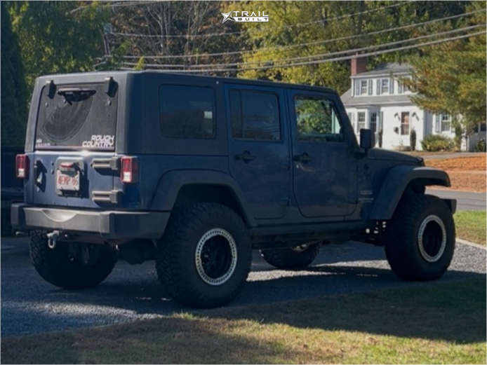Yes they do! This 2010 Jeep Wrangler is running KMC KM235 17x9 wheels, Nitto Ridge Grappler 35"x12.5" tires with Rough Country Suspension Lift 2.5" suspension, and needs No trimming and has No rubbing or scrubbing. As you can see from the pics this wheel and tire combo can be done!** With this 2010 Jeep Wrangler, the stance is Aggressive > 1" outside fender. Also remember spacers impact fitment, this ride is running None in front and None in rear.